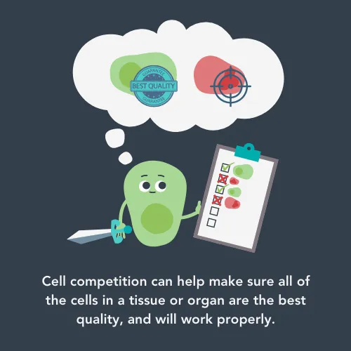 Most organisms made up of many cells have this cell competition, suggesting that it must be an advantage that we have evolved to maintain. Researchers believe that cell competition can act as a sort-of quality control system, making sure that the very best cells are used in each tissue type. Cells keep a constant watch out for other cells that are sick or not doing their jobs properly. These are then dealt with - usually forced to die to make way for a cell that is fit.
