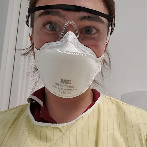 Lauren working during the COVID-19 pandemic.