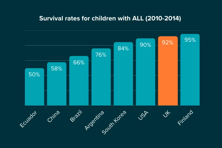 In countries that do collect data about childhood cancer, the survival rate for acute lymphoblastic leukaemia can be almost half that of the UK.